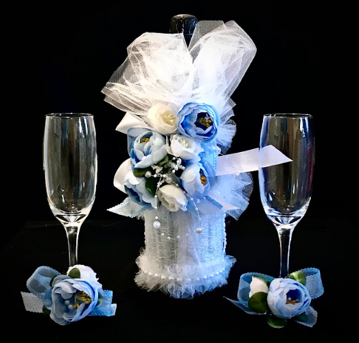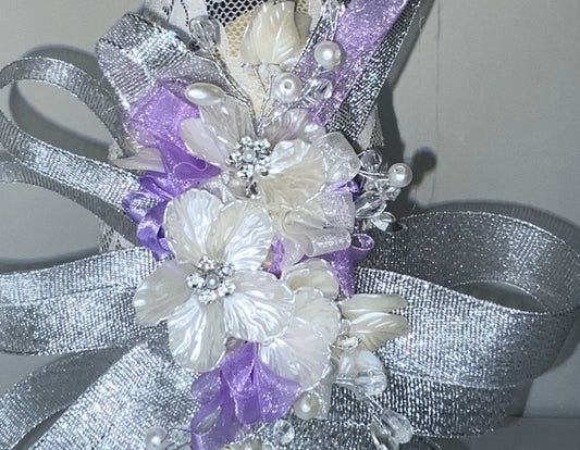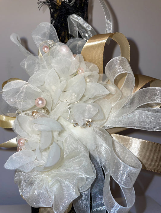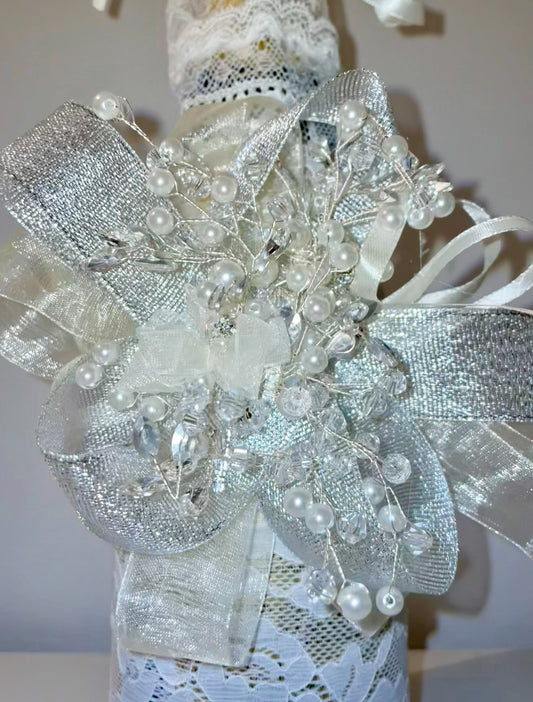Pearl Flowers & Silver - White Lace Bottle Sleeve