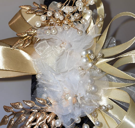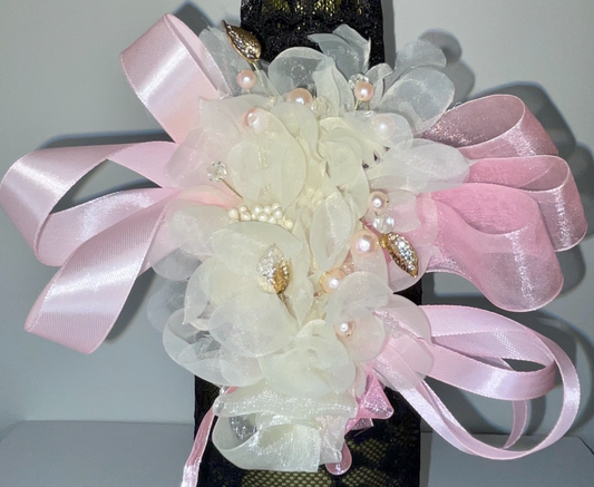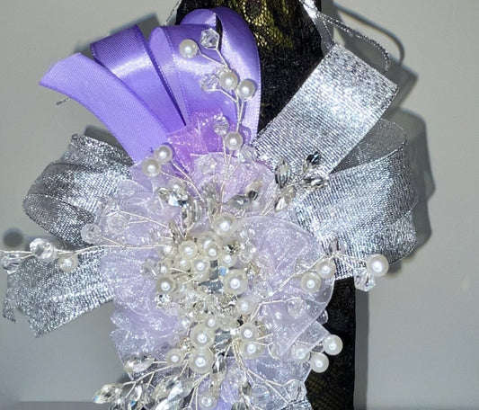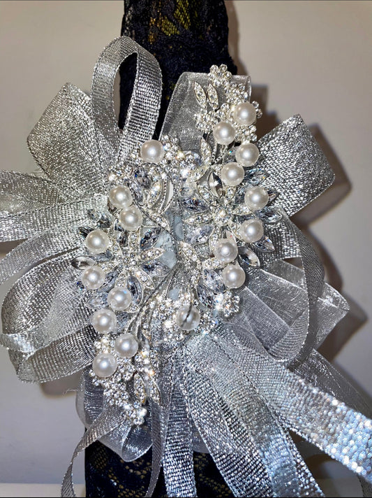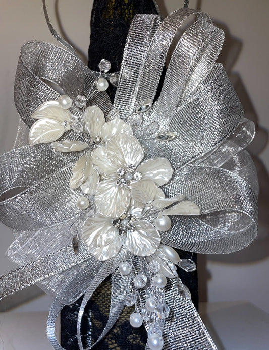 Pearl Flowers & Silver - Black Lace Bottle Sleeve