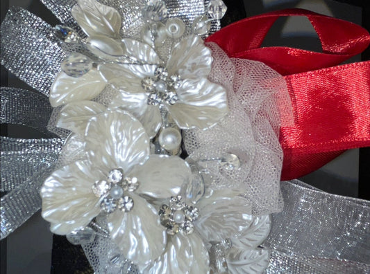 Pearl Flowers & Red- Black Lace Bottle Sleeve