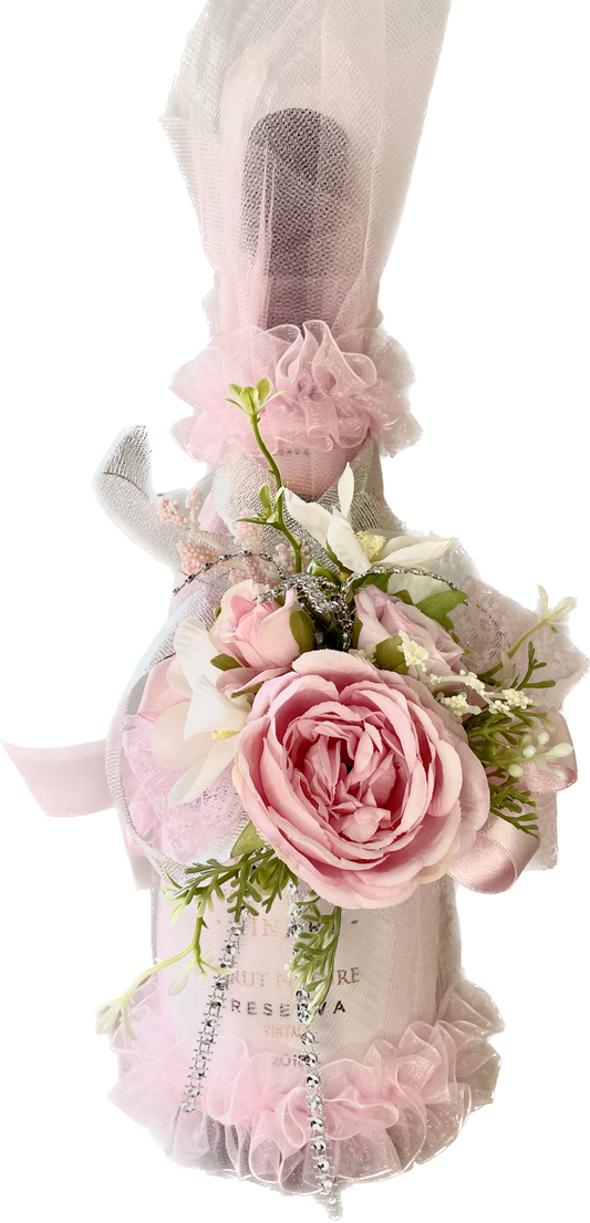 Silk Orchids & Pink - Black Lace Bottle Sleeve